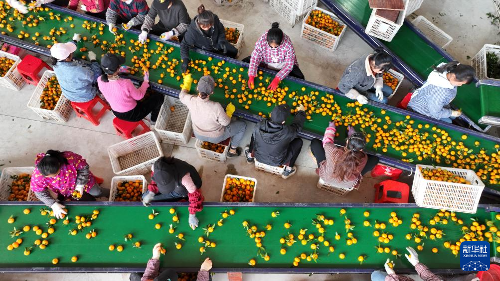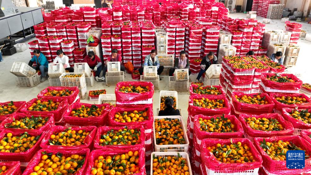 11月16日,在广西柳州市柳城县华侨农场,工作人员分拣蜜桔。