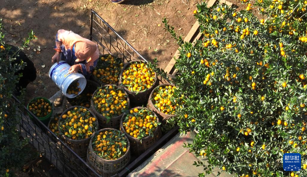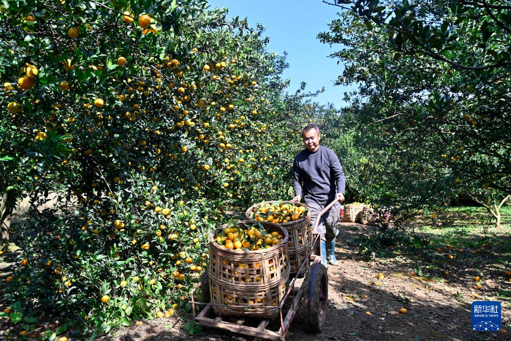 11月16日,在广西柳州市柳城县华侨农场,果农采收蜜桔。