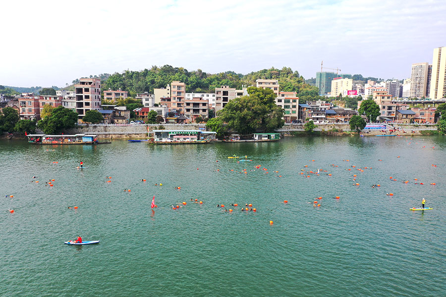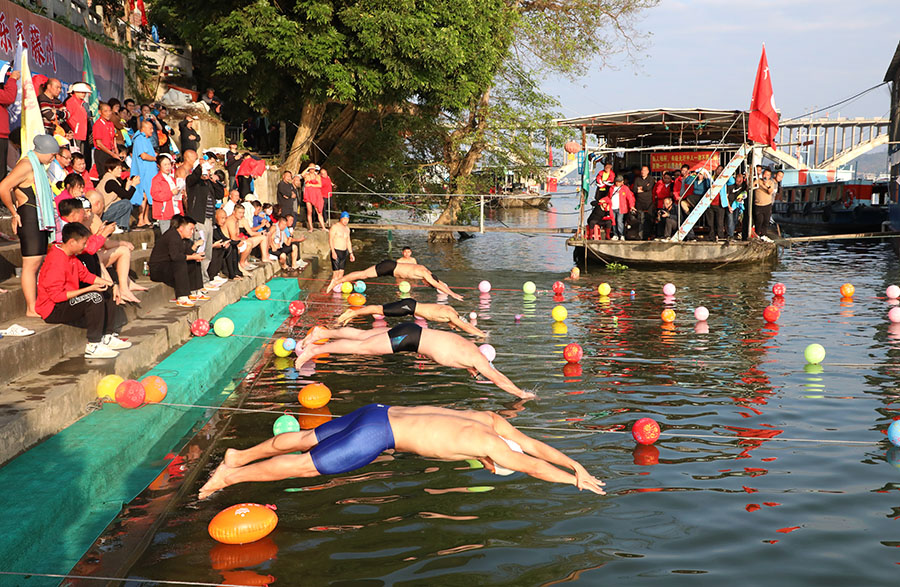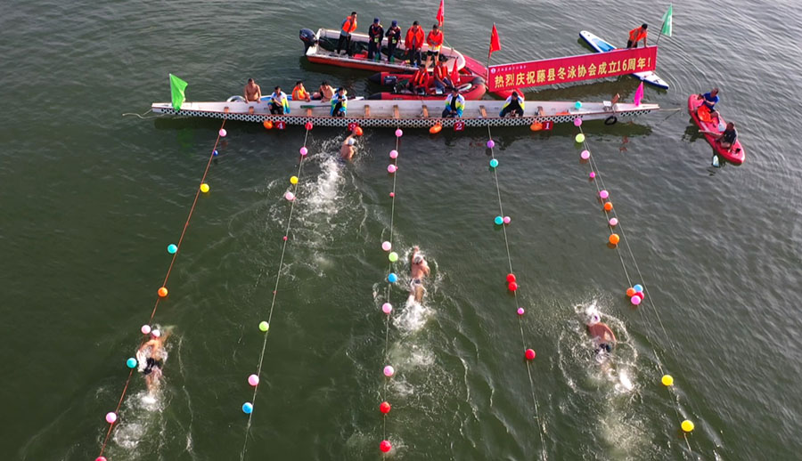 近日,广西藤县在津北码头举办“狮舞潮头•乐享藤州”2023藤县文化体育旅游活动周之畅游浔江活动。来自广西广东25个市县的43个冬泳协会,近500名冬泳爱好者参加本次活动,一起畅游浔江,进行冬日水上竞技,体验冬泳的快乐。 (岳柱健 李婉梅 杨凤)