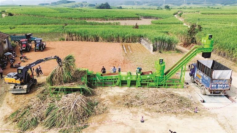 甘蔗联合收割机演示。 赵伟 摄