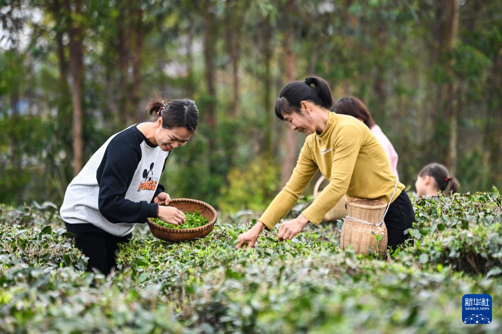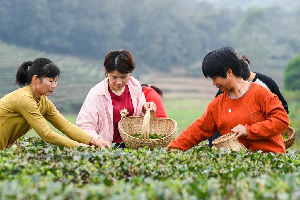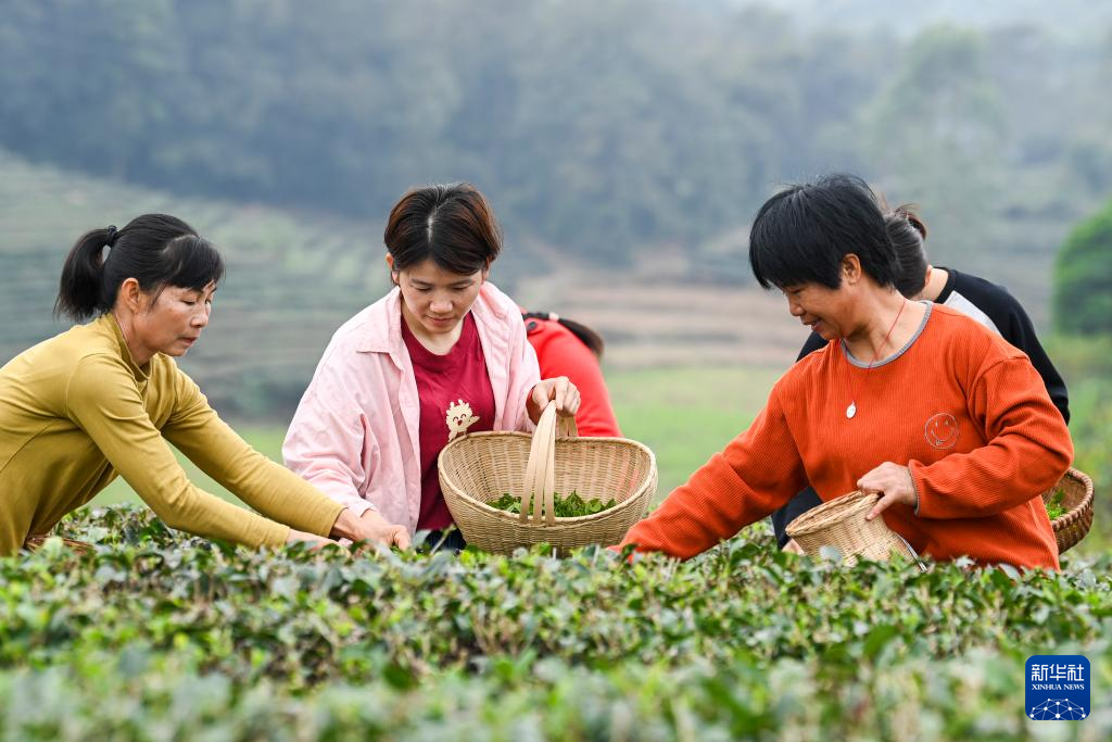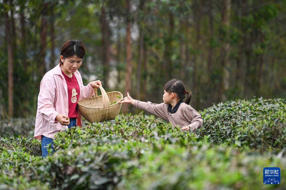 当日是雨水节气,广西兴业县山心镇蓬塘村茶农紧抓农时,采制春茶。近年来,兴业县大力发展茶产业,全县茶园面积2万多亩,年产值约1.8亿元。