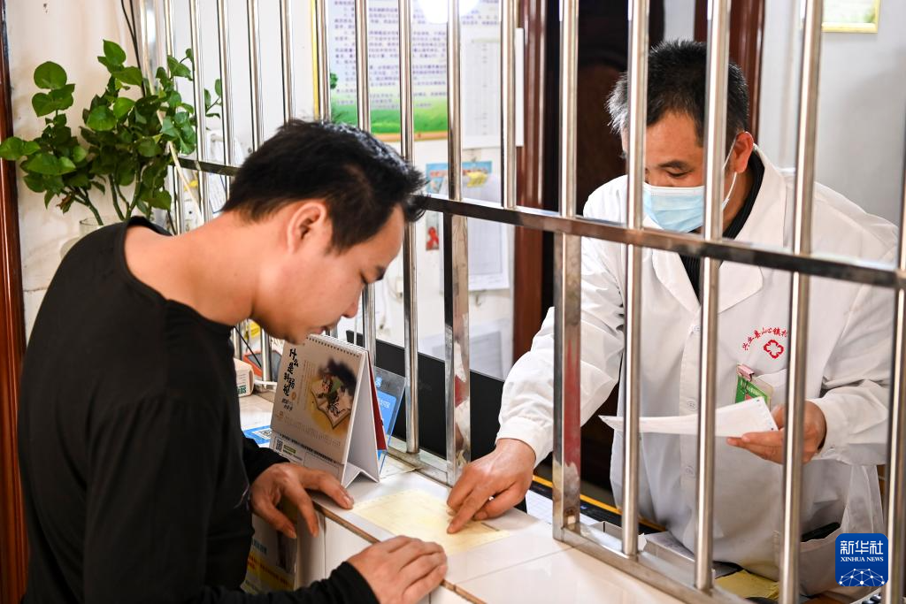 2月19日,在广西兴业县山心镇公和村卫生室,钟伟平给就诊的村民讲解药品收费、报销明细。