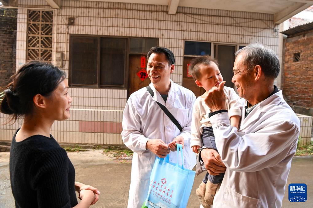 在广西兴业县石南镇环江村,村医梁柱明和儿子梁德和接力扎根乡村,守护着村民的健康。