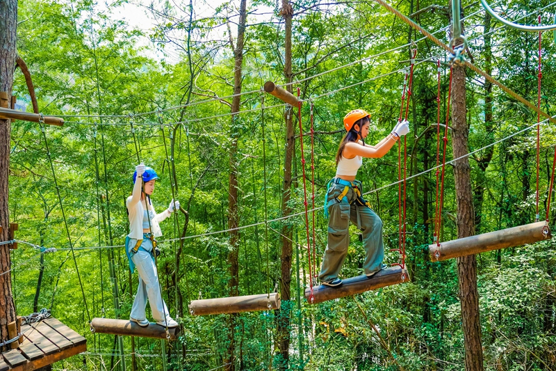 古木冲轻极限乐园以爱情+户外运动为主题,运动以体验无动力设施为主,包括丛林穿越、飞拉达、空中爬网、玻璃栈道等。