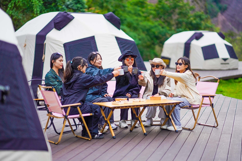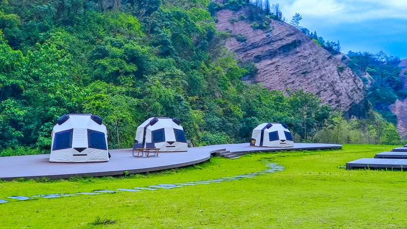 涧谷观光露营主打青崖赤壁环抱的一方自然涧谷秘境,保留丹霞地貌最原始的壮观气景与自然野趣,同时可开展烧烤、帐篷露营、崖壁电影、灯光秀等户外露营体验活动,抬头是浩瀚星河,闭眼是林间清风,每一口呼吸都是大自然的气息。