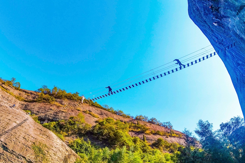 据介绍,享誉世界自然遗产、“中国最美七大丹霞”之一的桂林丹霞·八角寨景区,由八角寨地质奇观园、古木冲轻极限乐园、涧谷观光露营三大核心区域组成,是避暑赏雪、休闲观光、户外探险的绝佳旅游目的地。
