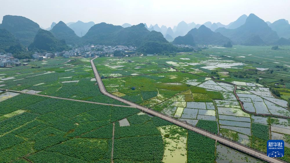 5月23日拍摄的柳州市柳江区百朋镇的双季莲藕种植基地(无人机照片)。