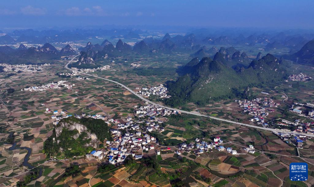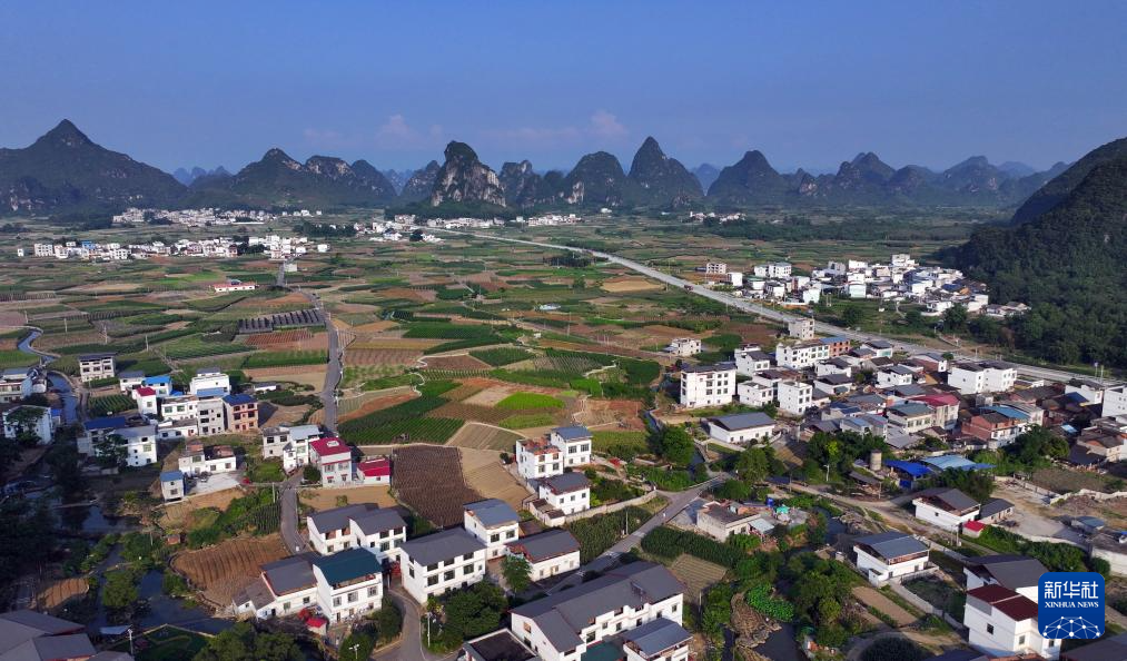 这是柳州市柳江区三都镇觉山村(无人机照片,5月25日摄)。