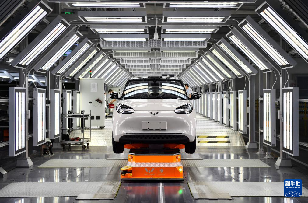 在广西柳州市上汽通用五菱精益智造工厂拍摄的等待下线的整车(5月9日摄)。