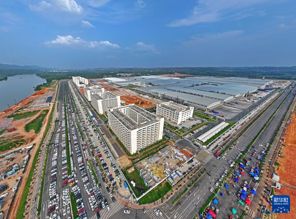 这是广西南宁市伶俐工业园区新能源汽车生产基地(5月14日摄,无人机照片)。