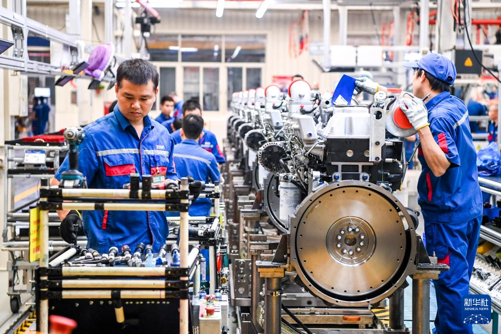 这是在广西玉林市玉柴机器集团有限公司拍摄的发动机生产线(5月15日摄)。