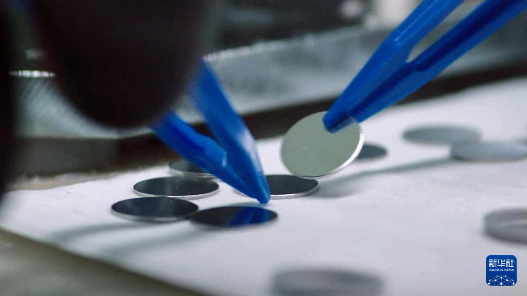 在广西柳州市瑞浦赛克动力电池有限公司电芯装配车间,工人进行目检工序(5月10日摄)。