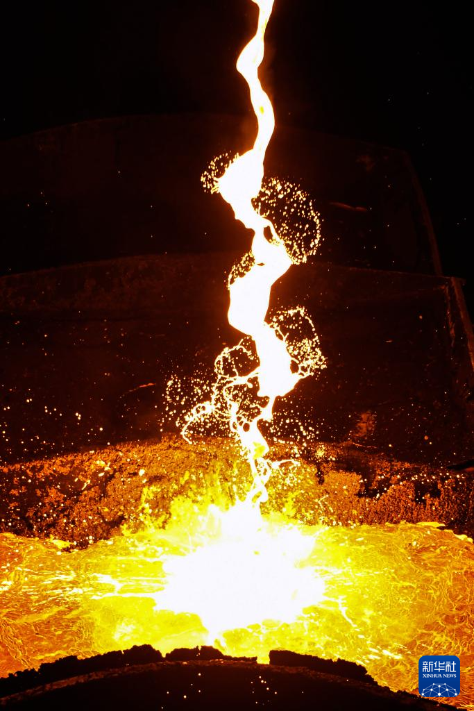 这是在广西北港新材料有限公司炼钢车间拍摄的作业场景(5月17日摄)。