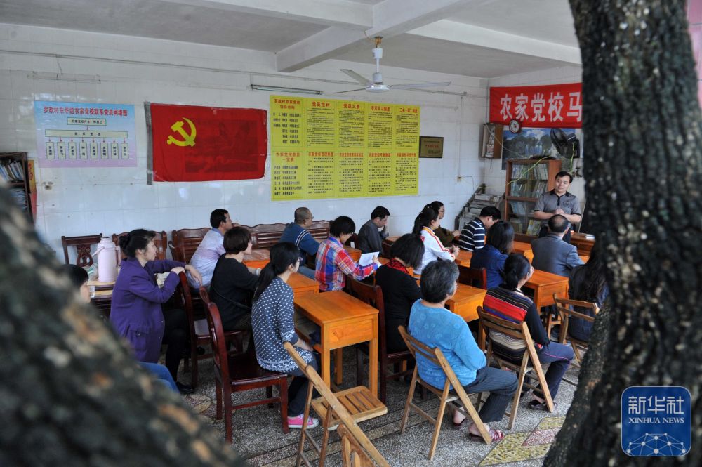 ↑2012年3月19日,在广西北流市民乐镇罗政村东华村民小组,村民和当地党员干部在农家党校学习。从2011年10月开始,广西北流市在全市287个村设立了589个农家党校,宣传党的方针政策、普及科技知识。截至目前,农家党校已对30万人次进行培训。新华社记者周华 摄