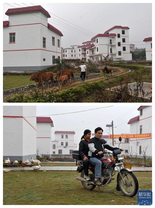 ↑拼版照片:上图为2011年2月23日,在广西玉林北流市民乐镇萝村,一位村民赶牛外出。下图为2011年2月23日,在广西玉林北流市民乐镇萝村,村民骑着摩托车出行。2010年,玉林市农民人均纯收入达5302元,比2009年增长17%;城镇居民人均可支配收入为17642元,比2009年增长11.5%。这是改革开放以来玉林市农民人均纯收入增幅首次超过城镇居民人均可支配收入增幅。新华社记者周华 摄
