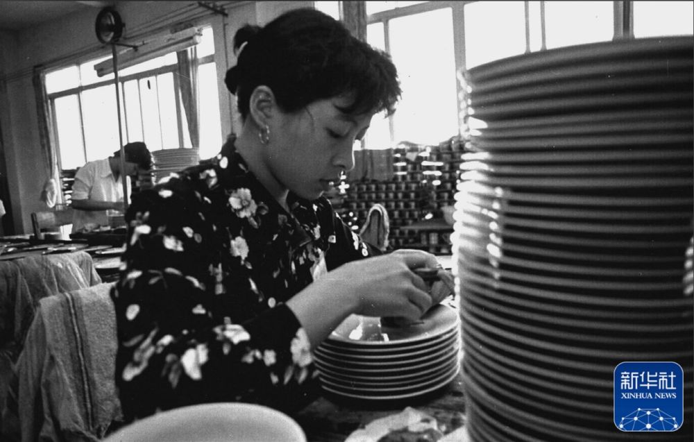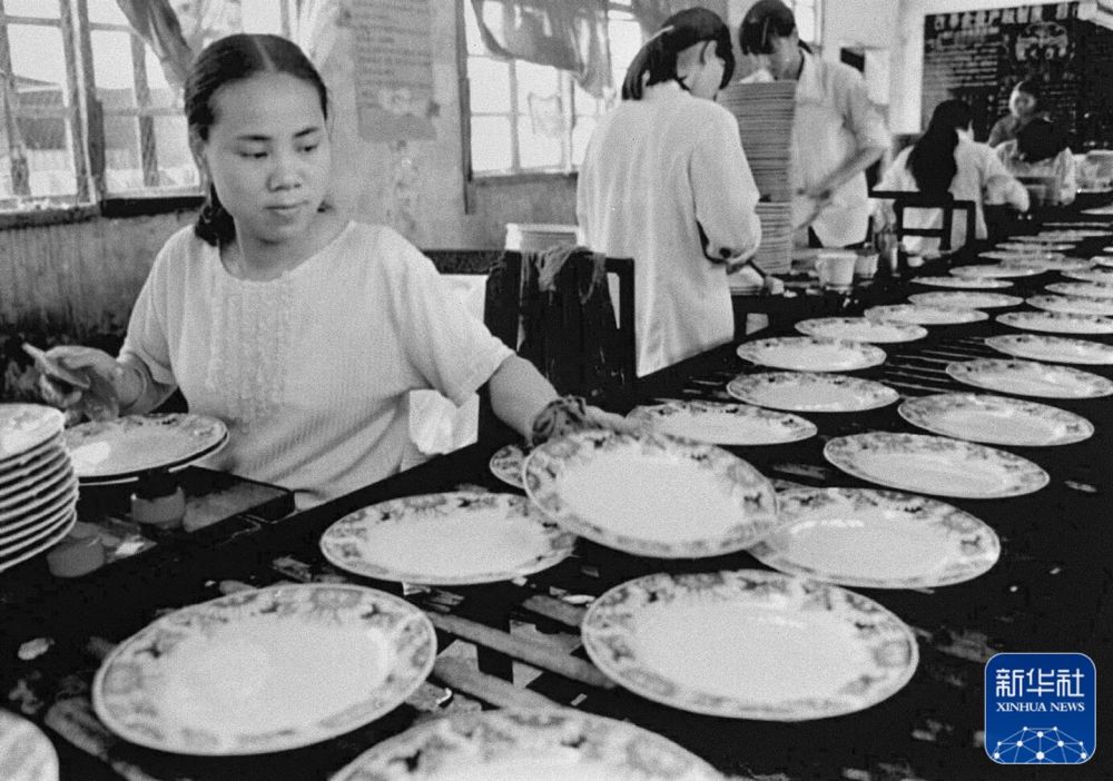 ↑在国内市场竞争日趋激烈的情况下,广西北流三环瓷业集团面向国际市场,强化内部管理、提高产品质量,从而使三环陶瓷在国际市场供不应求,不但为企业开拓广阔的生存空间,也带动当地陶瓷产业的健康发展。图为贴花车间女工正在精心操作。新华社记者嵇永强 摄(1998年11月4日发)