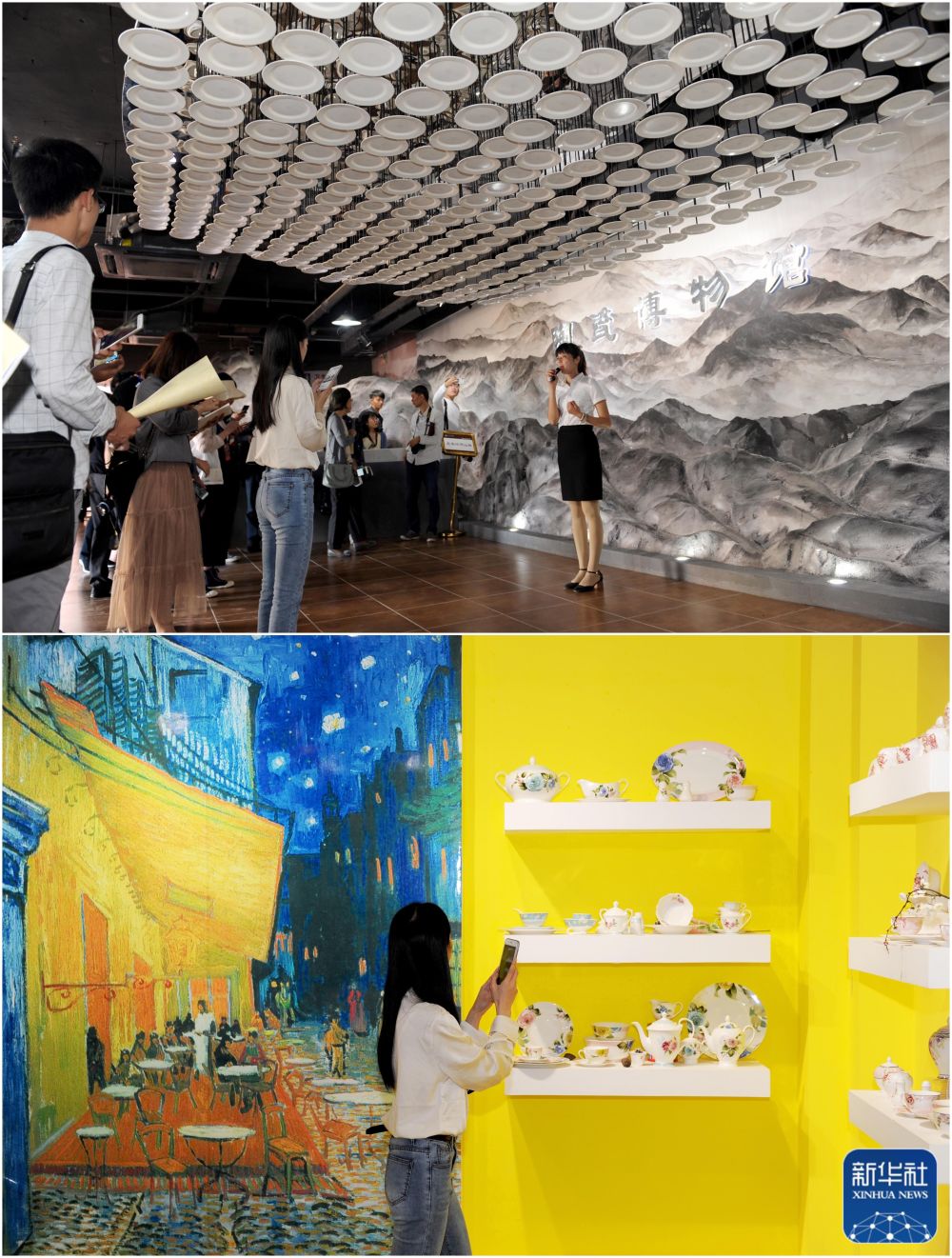 ↑拼版照片:2018年10月27日,参观者在北流陶瓷小镇的“世界陶瓷之窗”陶瓷产品展厅了解陶瓷产品。广西玉林北流市不断做大、做强、做优陶瓷产业,在北流市民安镇打造集陶瓷生产、陶瓷研发、日用陶瓷贸易、陶瓷文化展示等于一体的特色陶瓷小镇,探索一条生产、生活、生态“三生融合”的制造业富民新路。新华社记者魏海 摄