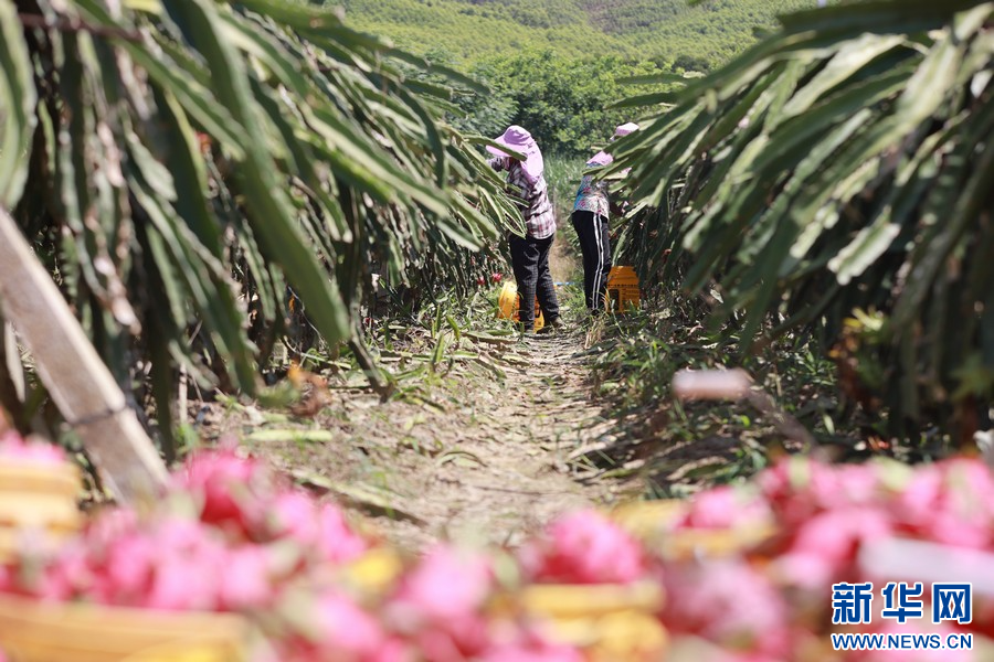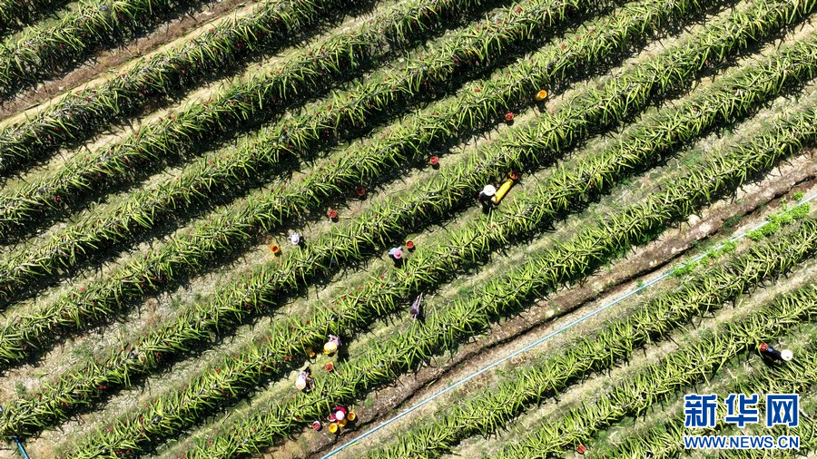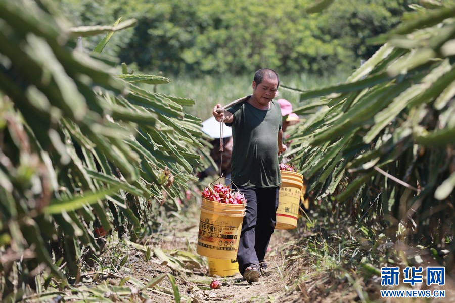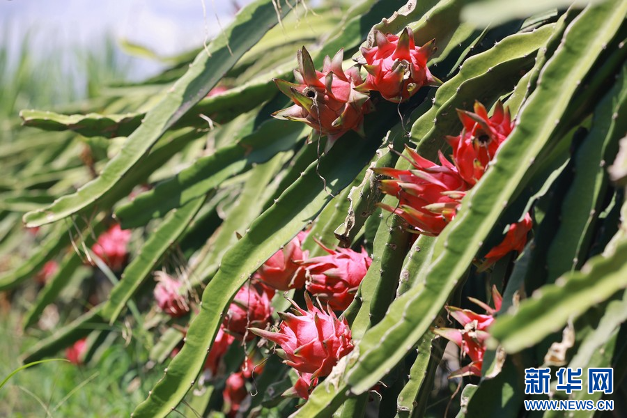夏季,在广西柳州市柳城县东泉镇雷塘村的一个家庭农场里,农户种植的软枝红心火龙果犹如一个个“小灯笼”挂满枝头,迎来了丰收的时刻。