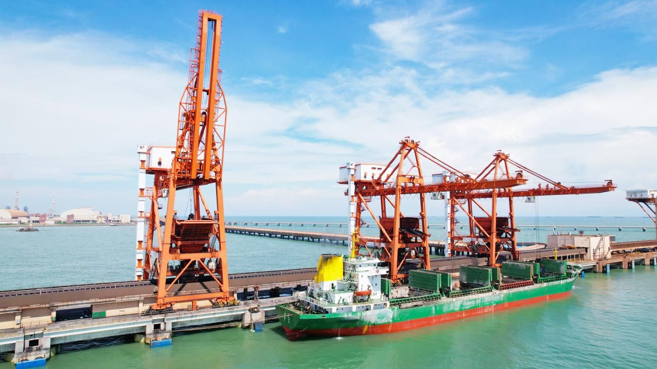 柳钢中金公司生铁块在北海铁山东港区玉林海港码头首航发运。(资料图片)