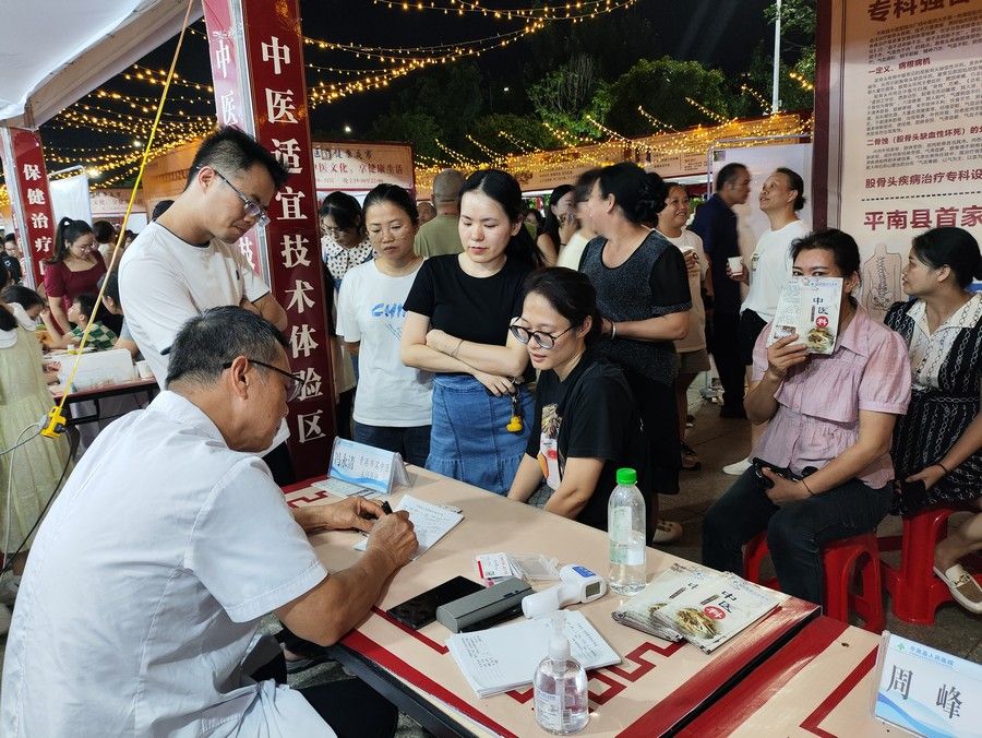 近日,主题为“传岐黄薪火 扬中医文化 享健康生活”中医药健康夜市活动在平南县江北公园开市。来自全县各医院的医生护士们变身夜市“摊主”,面对面、近距离为群众送上健康服务,把传统中医药文化融入百姓“夜生活”,让市民切身感受中医药文化的博大精深和神奇魅力。