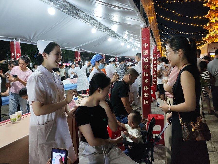 在义诊区,专家们为市民现场把脉问诊、检查治疗,耐心解答群众的问题;在中医适宜技术体验区,针灸、推拿、耳穴压豆、刮痧等中医适宜技术受到群众的热烈追捧;在中药茶饮区,群众争先品鉴乌梅汤、桑菊饮等中药茶饮;八段锦等中医养生功法表演精彩纷呈,赢得阵阵喝彩。