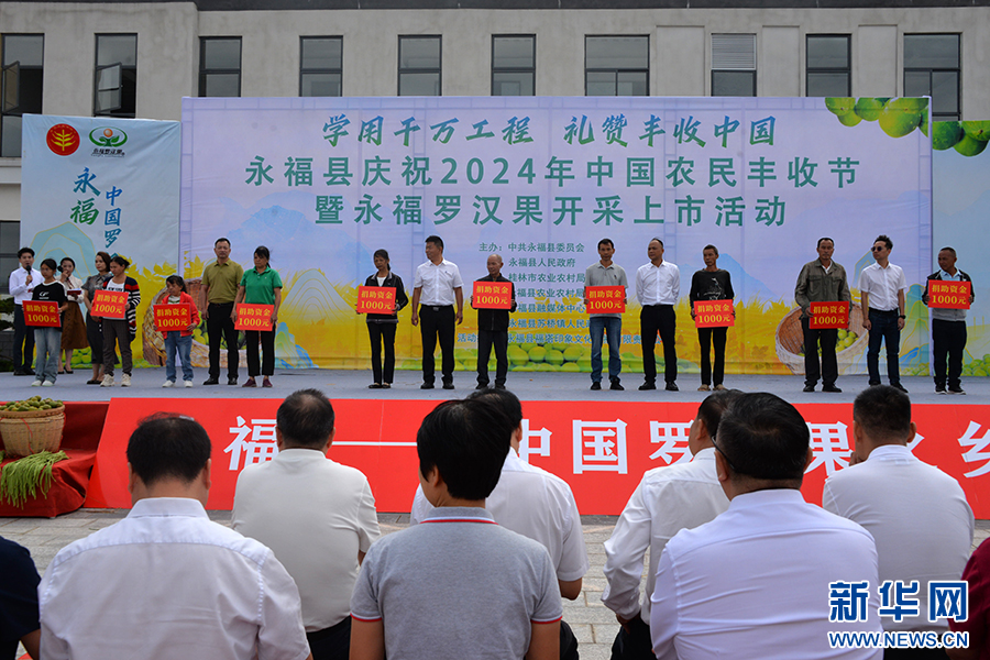 活动现场开展了粮王、果王、蚕茧王颁奖仪式,永福罗汉果市场、质量信息发布,罗汉果地体验罗汉果采摘,农产品展销等活动,充分展示永福县农业发展(罗汉果为主要展品)取得的阶段性成果。