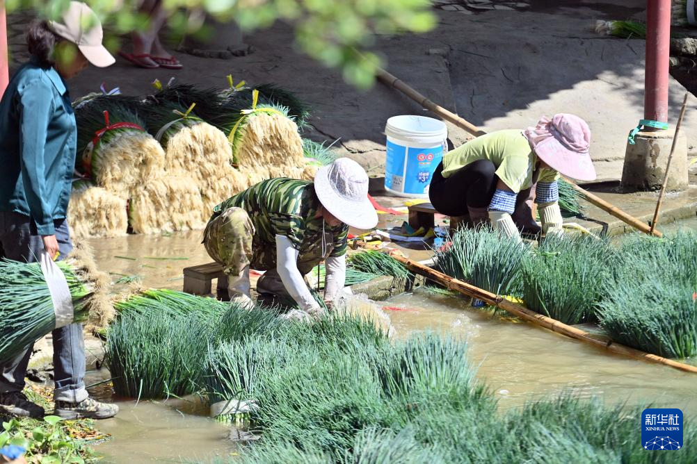 在柳州市柳江区三都镇觉山村,村民在清洗香葱(10月6日摄)。