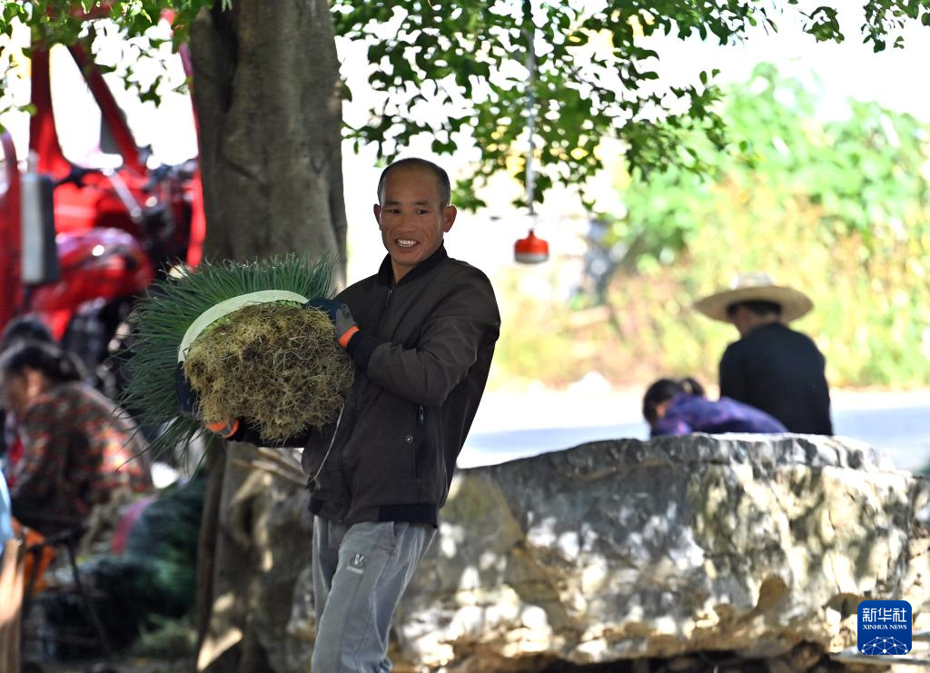 在柳州市柳江区三都镇觉山村,村民在挑选香葱(10月6日摄)。