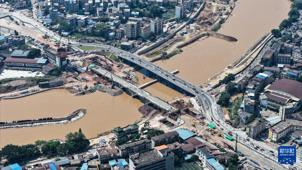 这是正在拆建中的钦州市子材大桥(10月11日摄,无人机照片)。