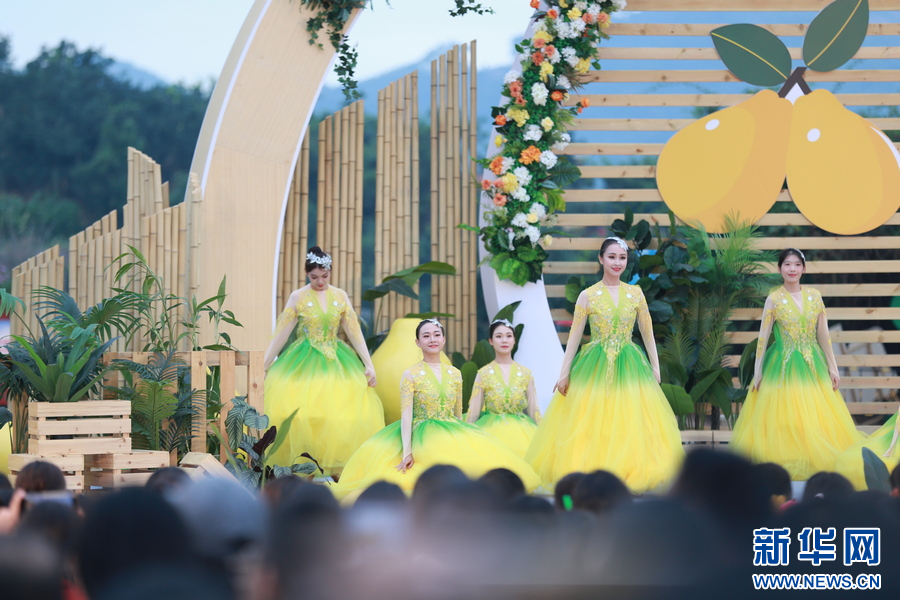 演员在“柚”见乡音·玉林乡村音乐会上表演节目。(新华网发 周敏 摄)