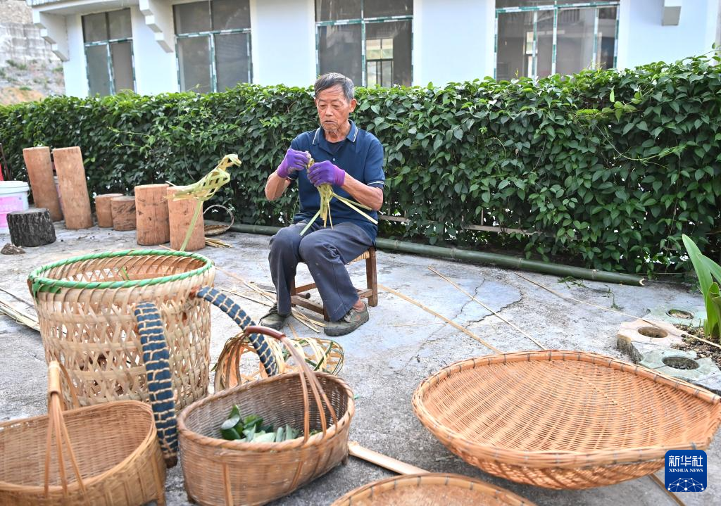 1944年出生的冯光明,是广西百色市西林县普合苗族乡大河村村民。作为一名竹篾编织手艺人,他能将一根根普通的竹子编织成篮子、背篓、小鸟等精巧物件。
