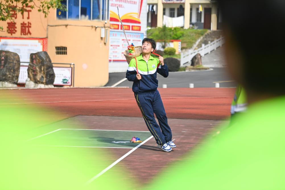 11月6日,广西玉林市民族中学的学生们在进行背篓绣球的比赛