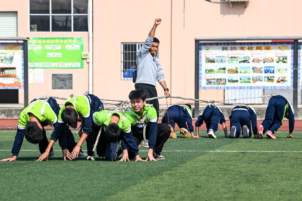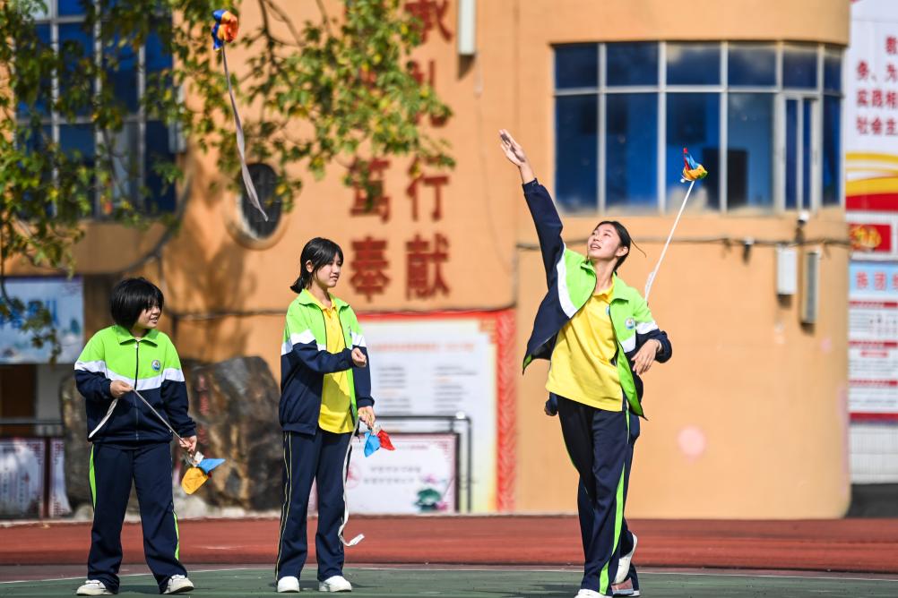 11月6日,广西玉林市民族中学的学生们在进行高杆绣球的比赛,这项运动目前也是广西一些地区中考体育的选项之一