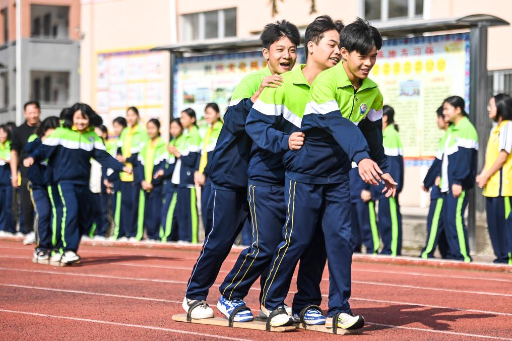 11月6日,广西玉林市民族中学的学生们在进行板鞋竞速比赛