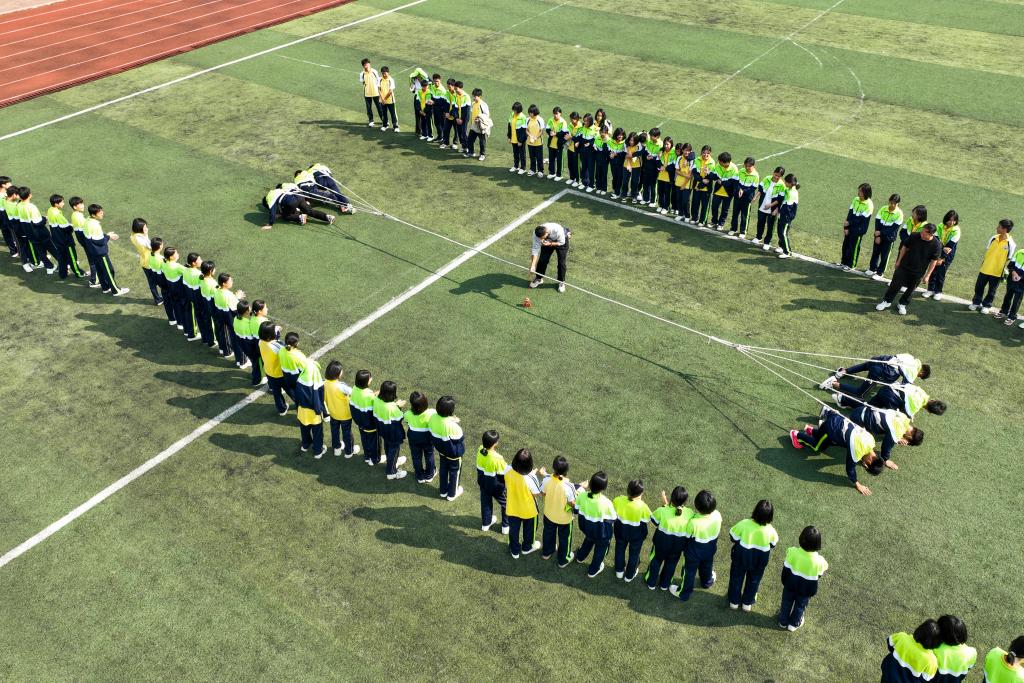 11月6日,广西玉林市民族中学的学生们在进行大象拔河比赛(无人机照片)