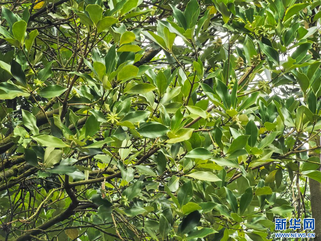 六万林场的八角树上,八角果实挂满枝头。新华社记者 王楚然 摄