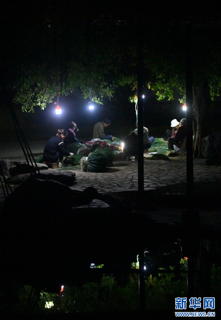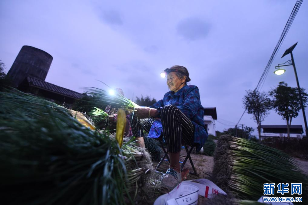 清晨,妇女们在柳州市柳江区三都镇觉山村挑选香葱(11月2日摄)。