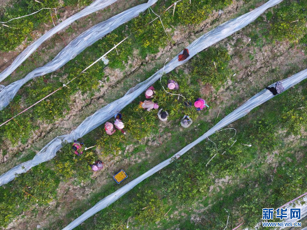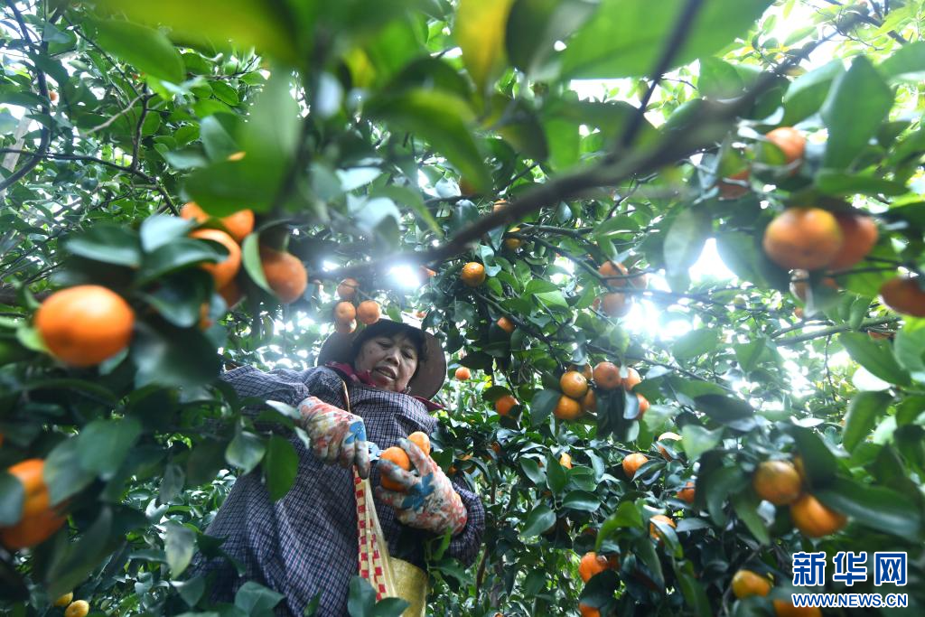 一名妇女在柳州市柳江区土博镇四案村采收砂糖橘(12月18日摄)。