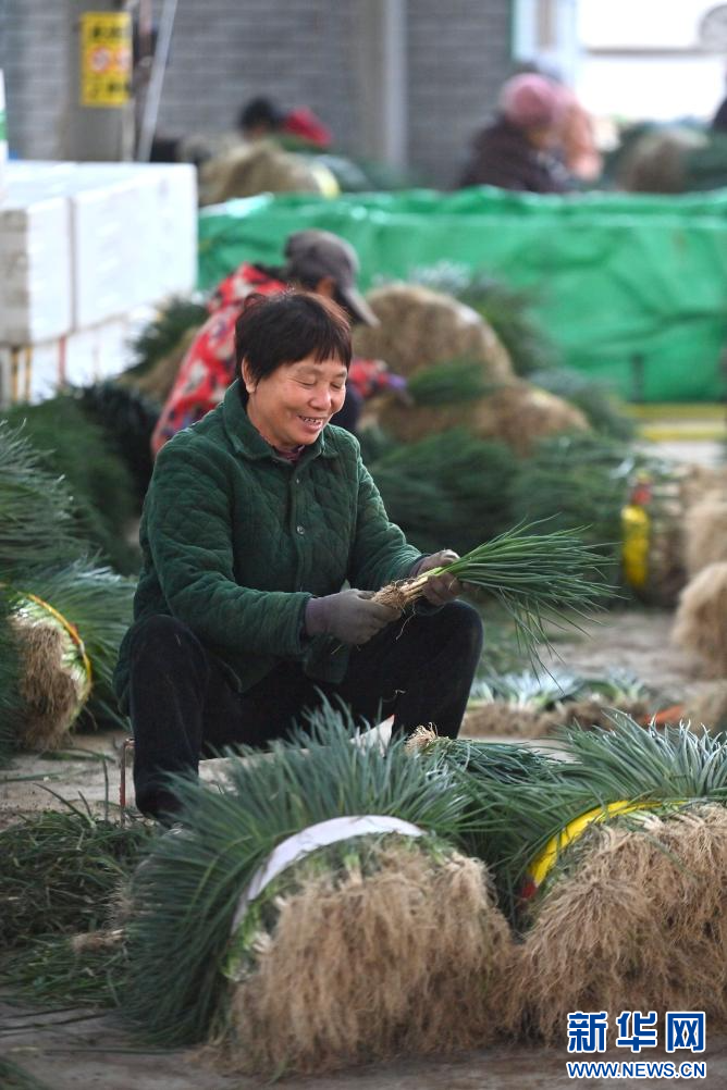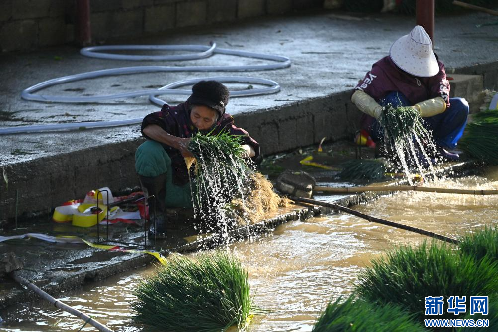 妇女们在柳州市柳江区三都镇觉山村清洗香葱(12月18日摄)。