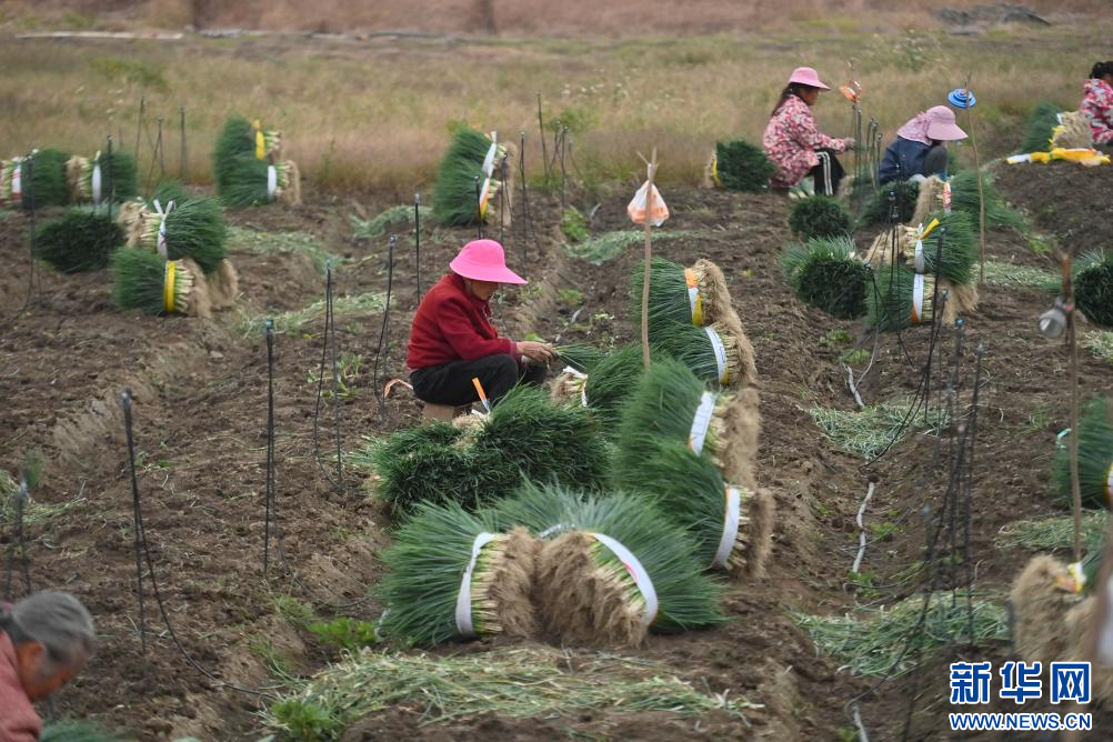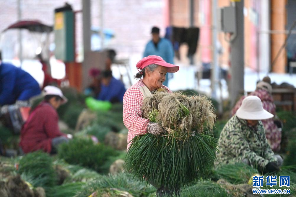 妇女们在柳州市柳江区三都镇觉山村挑选香葱(11月3日摄)。