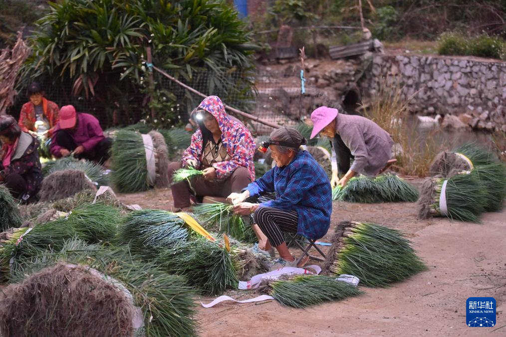 2024年11月2日清晨,觉山村村民在挑选香葱。