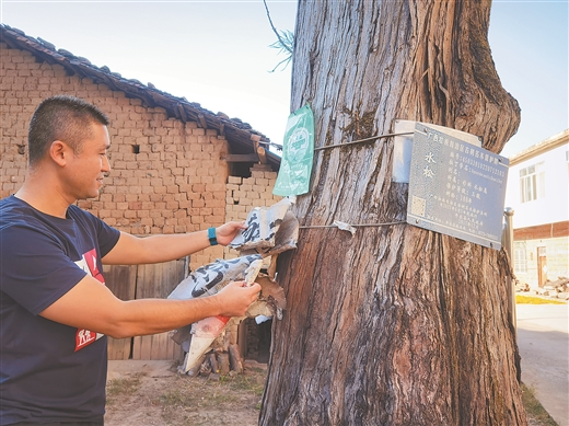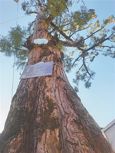 “村民把水松当作‘镇村之宝’,给它打营养针,对过往运输车辆限高,在地面打孔增加雨水渗透,冬天浇水……”沙子镇保安村党总支书记刘泳町告诉记者,村民世代与之和谐相处,还将其纳入《乡规民约》加以保护,让这株水松健康生长。