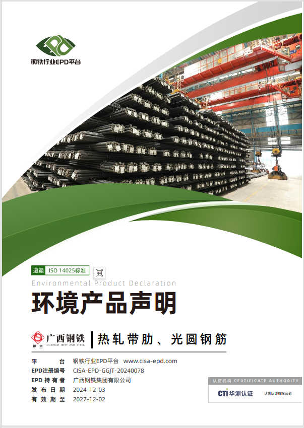 2024年12月,广西柳州钢铁集团有限公司(以下简称柳钢集团)首次在中国钢铁行业EPD平台成功发布柳钢集团冷轧钢带产品、柳钢股份热轧钢筋产品、广西钢铁冷轧钢带和热轧钢筋产品共计4份环境产品声明EPD报告,成为广西首家发布环境产品声明EPD报告的钢铁企业。