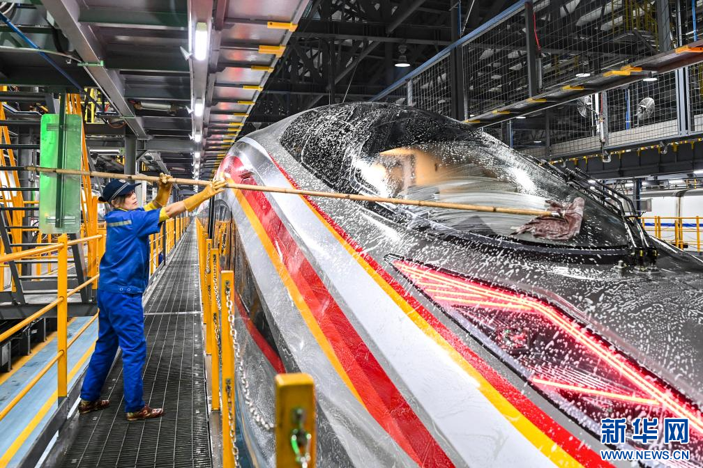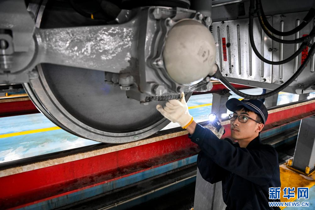 1月14日,2025年春运开启。各地铁路部门对列车进行维护、清洁、保养,确保春运期间列车运行安全。