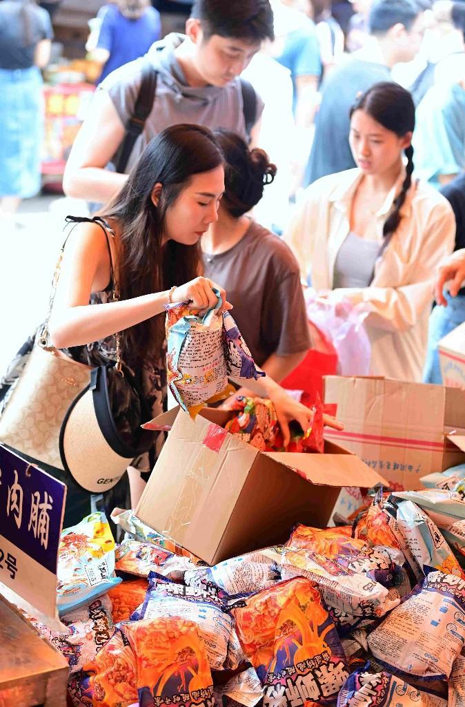 游客正在挑选袋装螺蛳粉(黄蕊 摄)