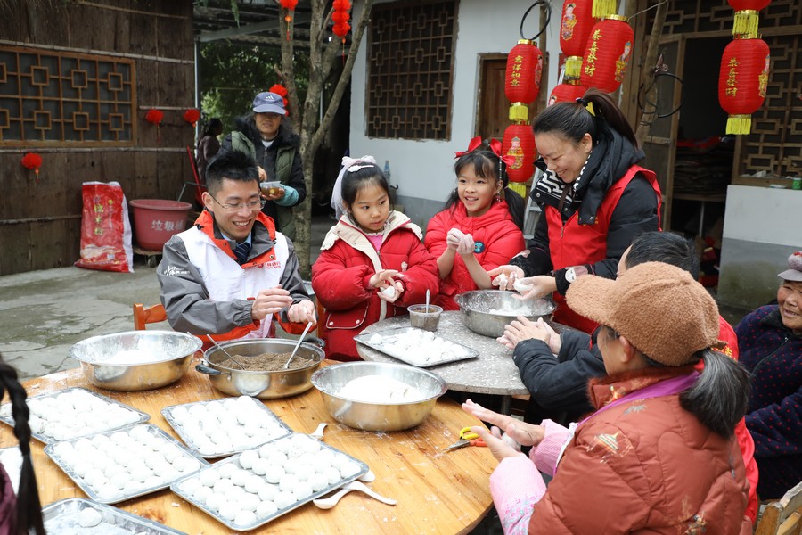 活动现场氛围温馨、其乐融融。志愿者和村民们早早地来到活动现场,大家纷纷动手、相互配合,一起分工协作包汤圆、煮汤圆,同时开展套圈、投壶等趣味游园活动,在感受传统文化魅力的同时,也增进了邻里间的友谊,促进了村屯的和谐氛围。(于姝敏、胡艺、陈标钰)