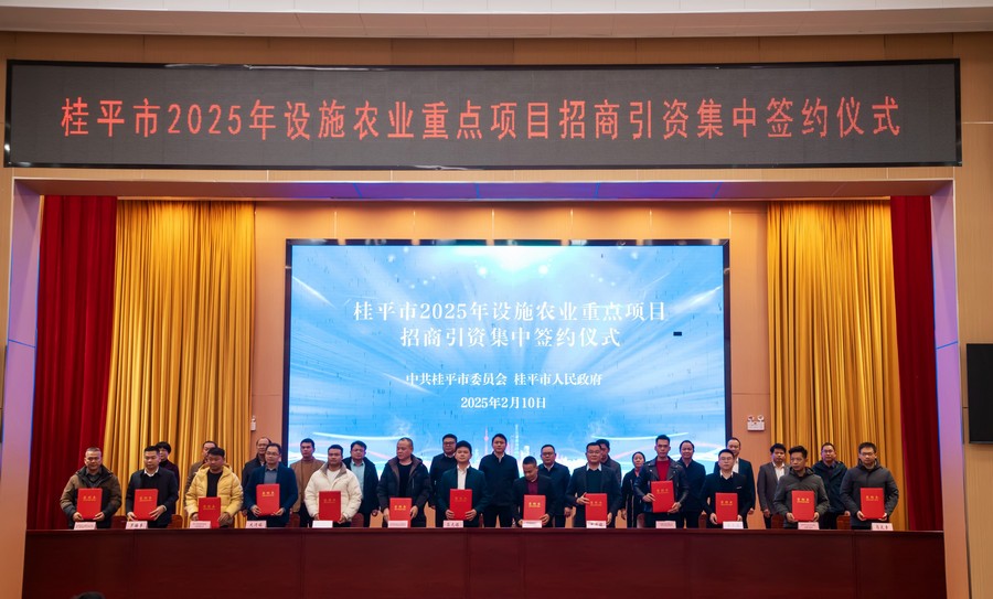 2月10日,广西桂平市举行2025年设施农业重点项目招商引资集中签约仪式,总投资金额12.28亿元的13个项目在仪式上成功签约。