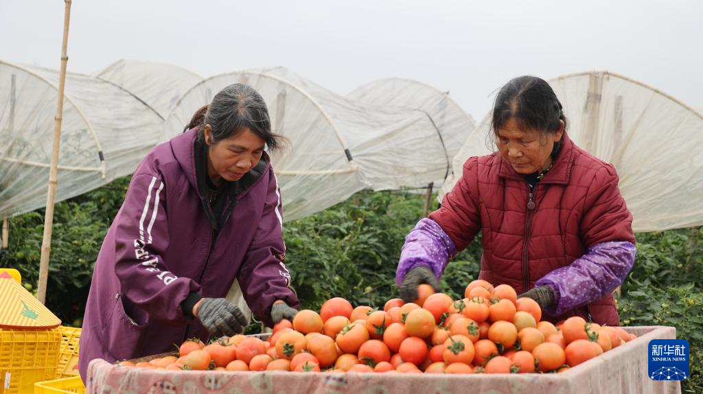 新华网南宁2月24日电(庞飞勇、梁宇)今年2月份,玉林市福绵区新桥镇新桥社区秀岭屯的富硒西红柿种植基地迎来了丰收。凭借独特的种植模式和优质的产品,这里的西红柿不仅在本地市场供不应求,还远销周边地区,成为当地乡村振兴的特色产业。