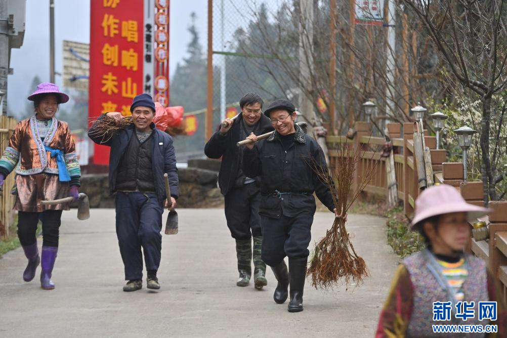 早春时节,广西柳州市融水苗族自治县部分单位、学校和村寨陆续开展义务植树活动,为大地增添新绿。