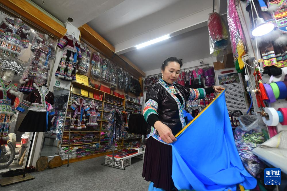 如今,杨洪英制作的苗族服饰和文旅产品,远销全国各地。随着当地文旅产业的发展,苗族服饰逐渐成为游客青睐的旅游商品。